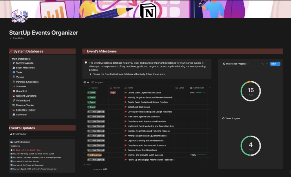 Are you an event manager looking to organize and plan successful events for your company? Look no further! The Startups Events Organizer Notion Template is designed specifically for you. It is the ultimate tool that will revolutionize your event planning process and guarantee a smooth experience for your team and attendees.