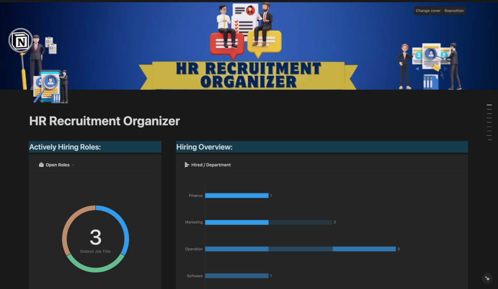 The Notion HR Recruitment Organizer is a comprehensive recruitment management system designed to streamline the hiring process across all departments of your organization.